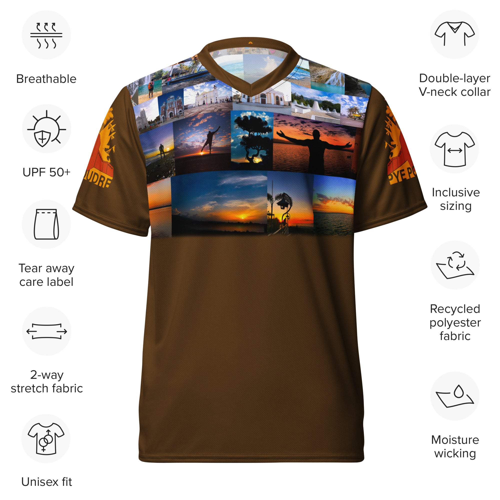 Looking for the perfect sports jersey? We have you covered—made of 100% recycled polyester fabric, this shirt is breathable, moisture-wicking, and has a double-layered v-neck collar that creates a premium look.
