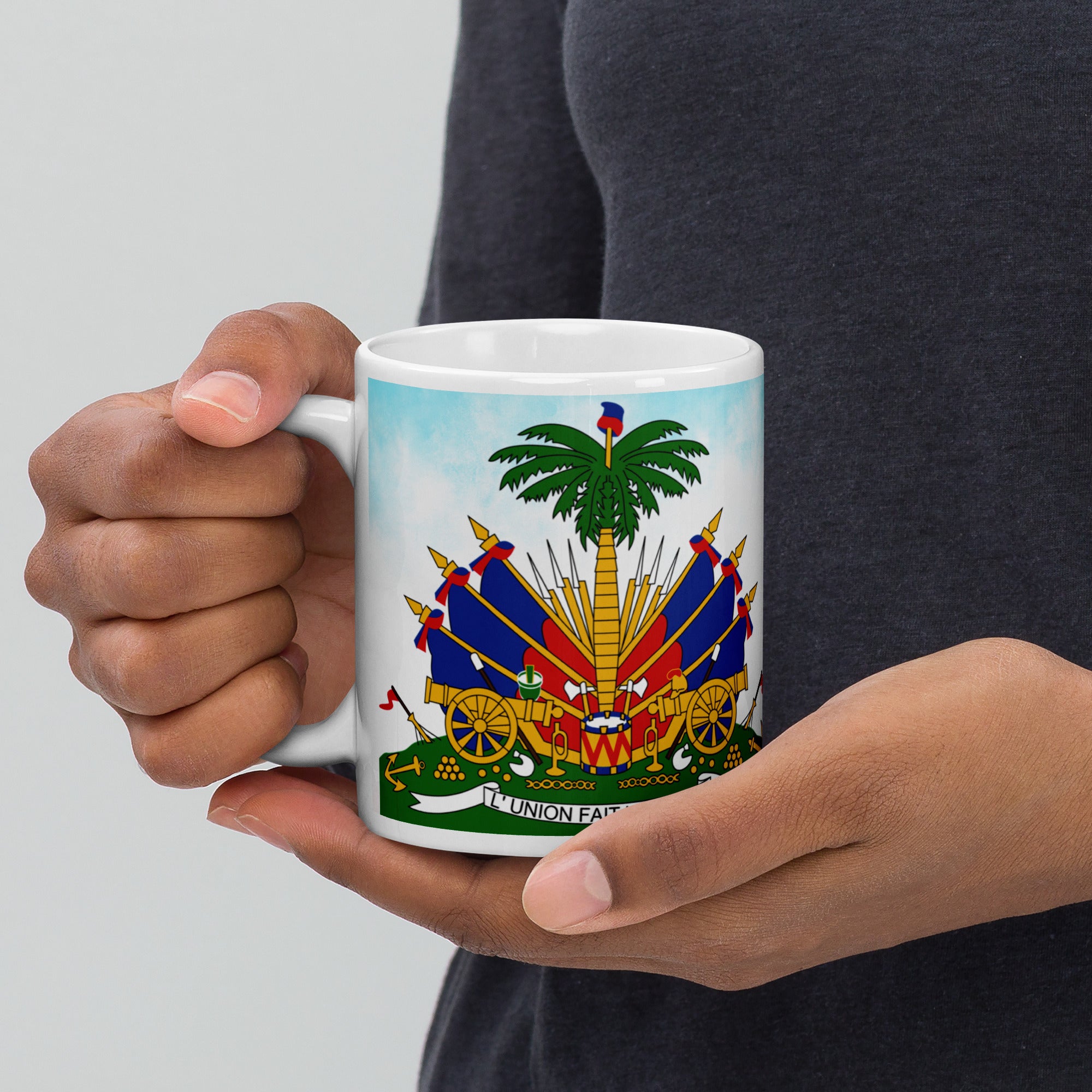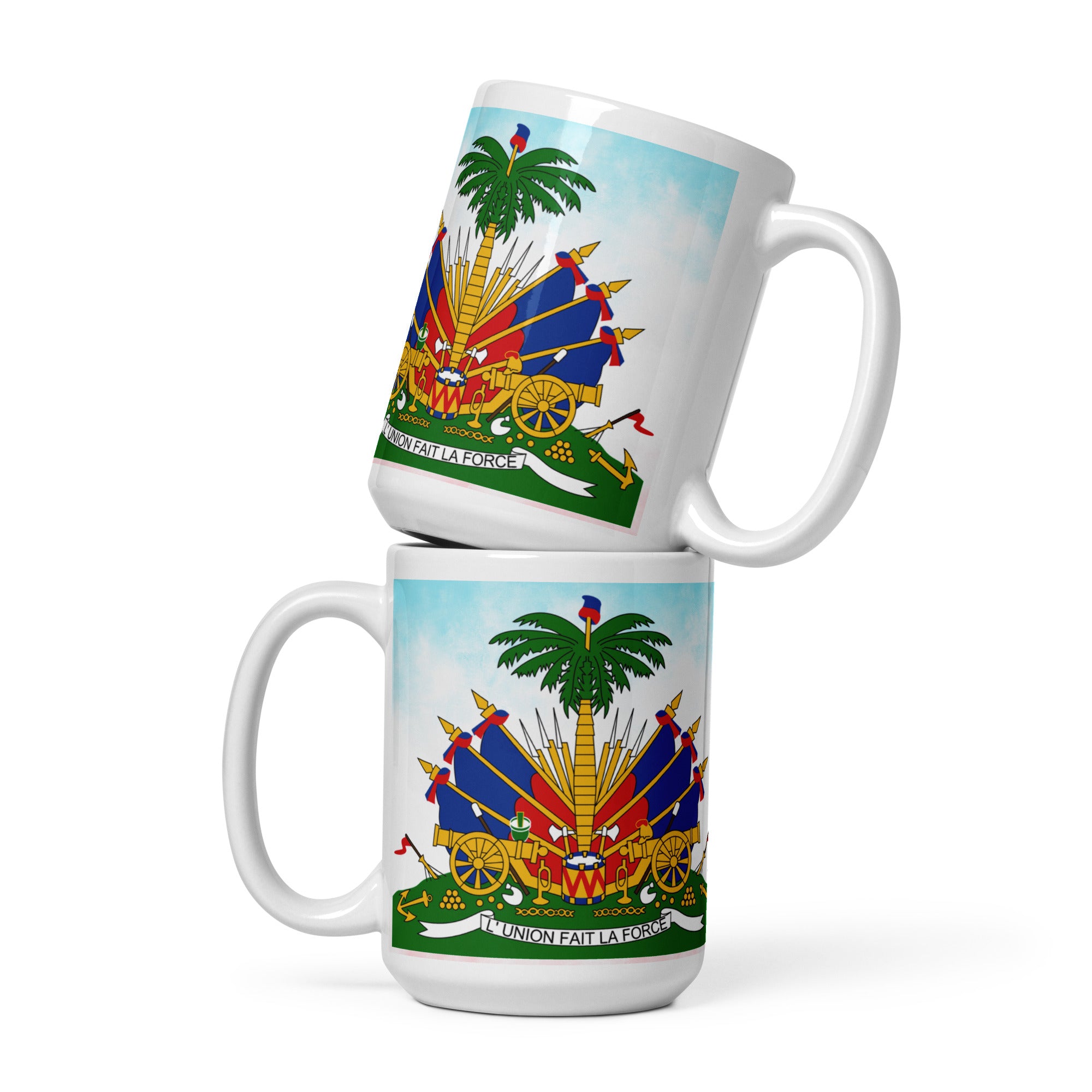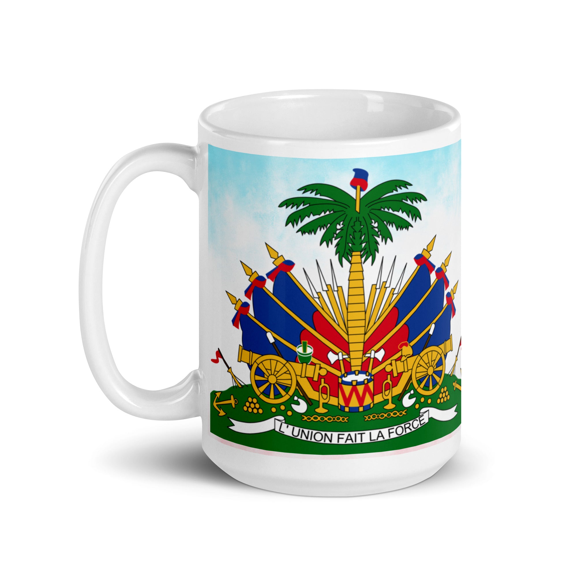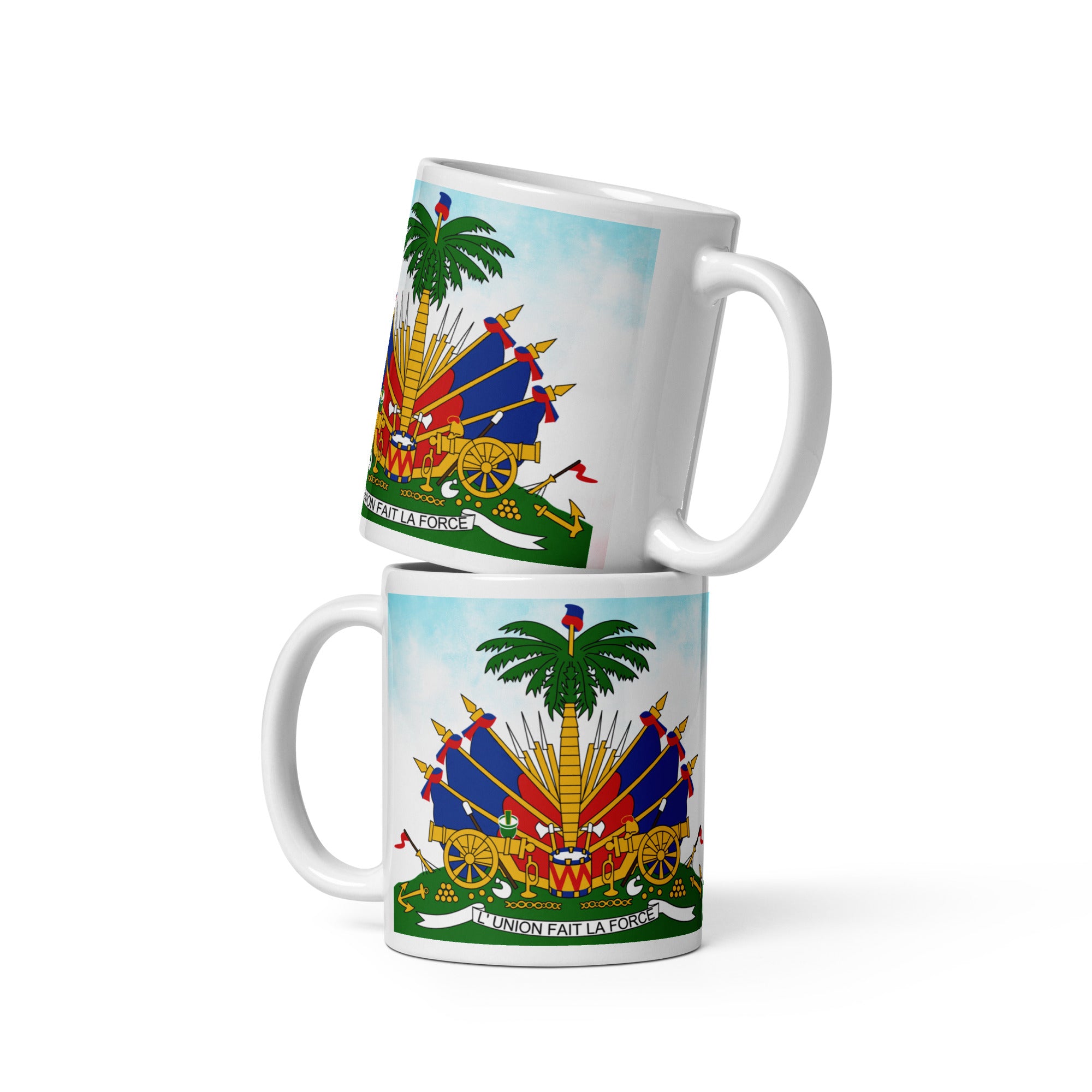 White glossy mug ( Haitian Emblem )